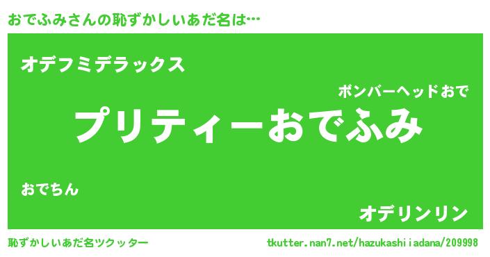 | ヘコむあだ名 | 『おでにー』『おでを』『豆乳』 |