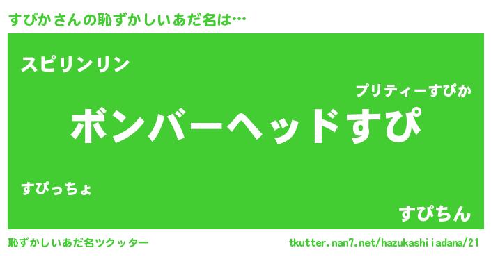 | ヒーロー風カッコイイあだ名 | 『愛の使者すぴか』『幻影騎士スピ』 |