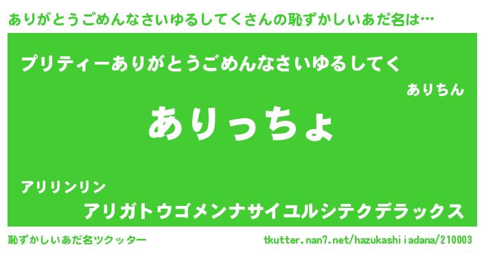 | 胡散臭い通販商品みたいなあだ名 | 『運命の人と巡り会える高級そうな絵画…その名も「ありがとうごめんなさいゆるしてく」』 |