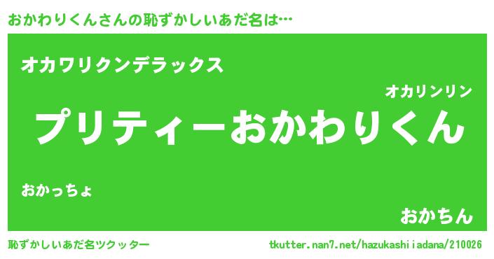 | ヒーロー風カッコイイあだ名 | 『スーパーオカワリクン』『幻影騎士オカ』 |
