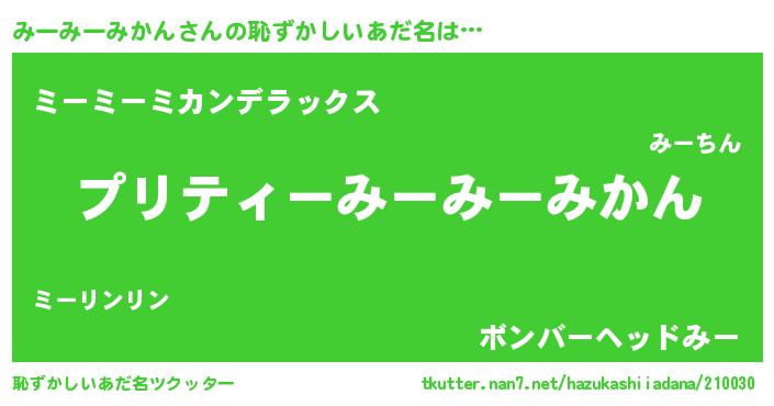 | ヘコむあだ名 | 『みーもー』『みーみーみかん(小並感)』 |