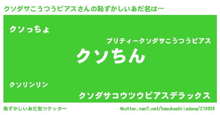 | 意味不明あだ名 | 『永久保存クソダサこうつうピアス』 |