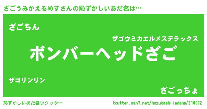 | 料理風あだ名 | 『ざごうみかえるめすの炊き込みご飯』 |