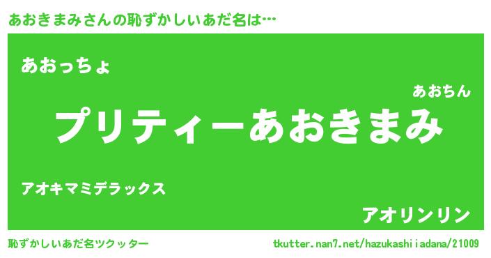 | 男性向けラノベタイトル風あだ名 | 『アオキマミアートオンライン』 |