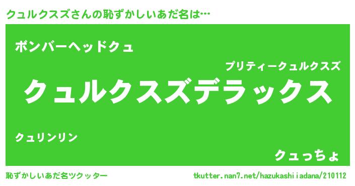 | 意味不明あだ名 | 『自称クュルクスズ』 |