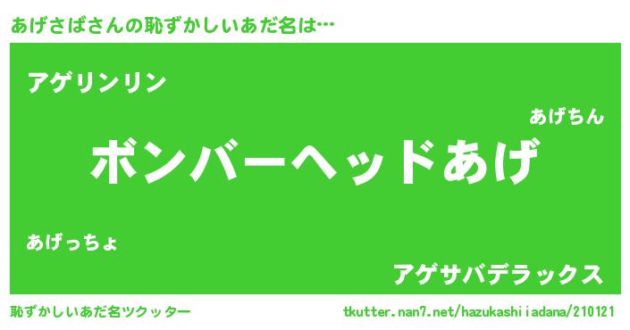 | 男性向けラノベタイトル風あだ名 | 『はたらくあげさばさま!』 |
