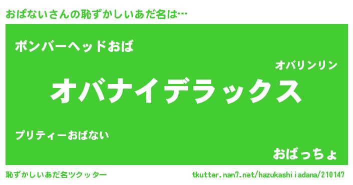 | 男性向けラノベタイトル風あだ名 | 『Re:おばないから始める異世界生活』 |