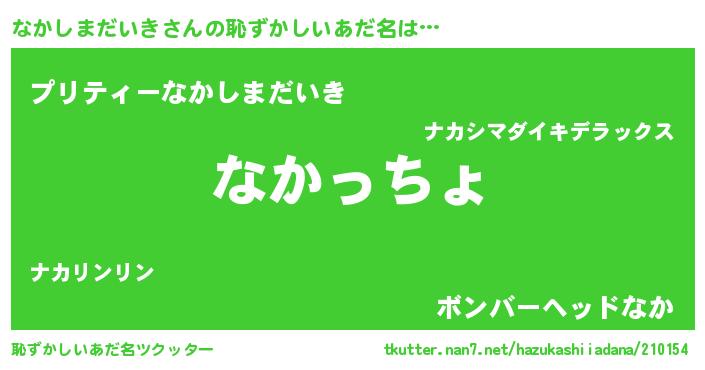 | 欧米人風あだ名 | 『なかしまだいき・ステッグマイヤー』 |