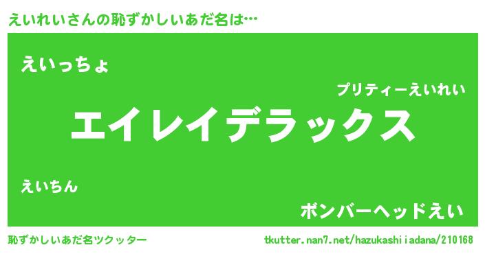 | ヒーロー風カッコイイあだ名 | 『究極戦士エイレイ』『仮面エイダー』 |