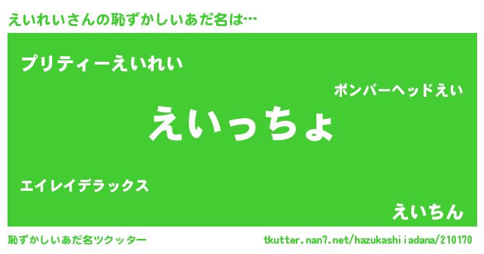 | 意味不明あだ名 | 『えいれいフォーエバー』 |