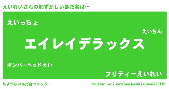 | ヘコむあだ名 | 『豆乳』『えいもー』『えいれい(笑)』 |