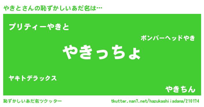 | ヘコむあだ名 | 『つくし』『やきにー』『やきと(笑)』 |