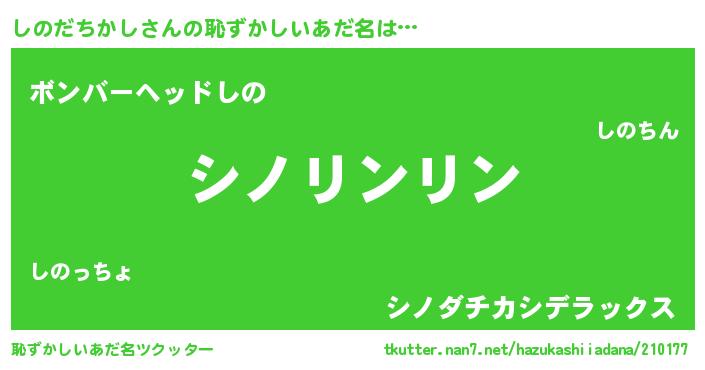 | 男性向けラノベタイトル風あだ名 | 『この素晴らしい世界にしのだちかしを!』 |