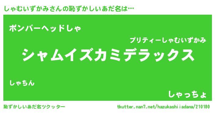 | 意味不明あだ名 | 『住所不定無職しゃむいずかみ(77歳)』 |