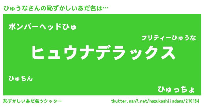 | ヒーロー風カッコイイあだ名 | 『最強戦士ヒュウナ』『仮面ヒュダー』 |