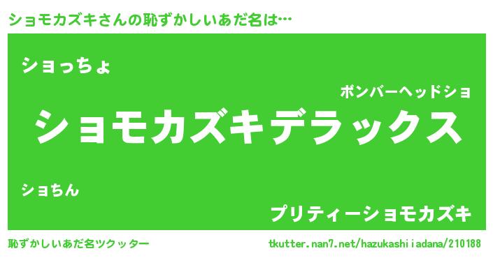 | 肩書あだ名 | 『ショモカズキ船長』『ショモカズキ総統』 |