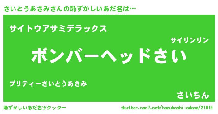| 意味不明あだ名 | 『眠気覚ましガムさいとうあさみ味』 |