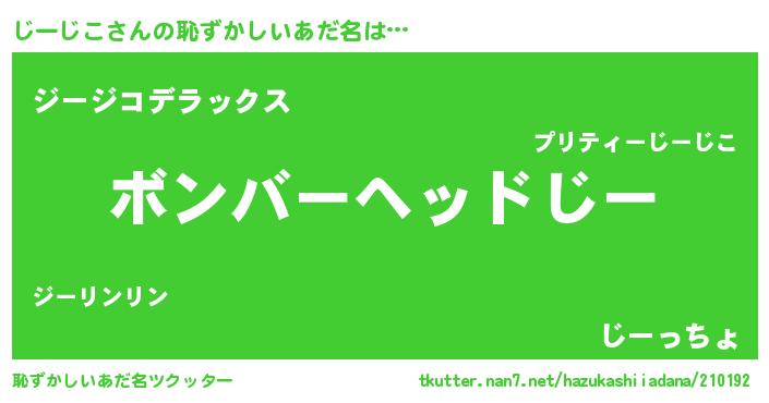 | 男性向けラノベタイトル風あだ名 | 『おまえをオタクにしてやるから、俺をじーじこにしてくれ! 』 |