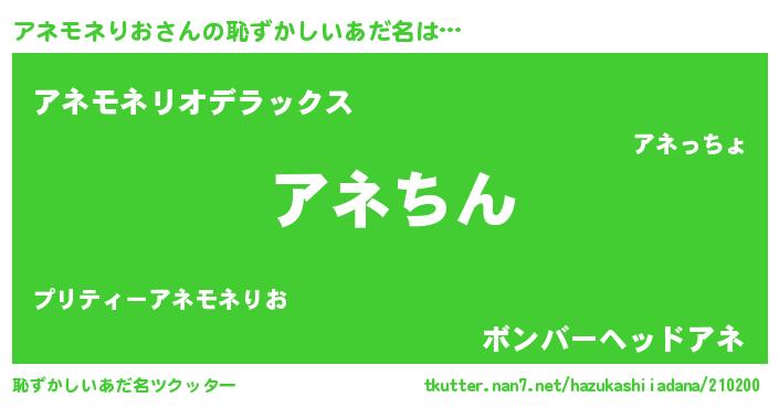 | 意味不明あだ名 | 『永久保存アネモネりお』 |