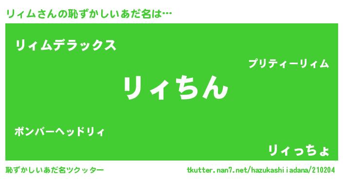 | 意味不明あだ名 | 『永久保存リィム』『自称リィム』 |