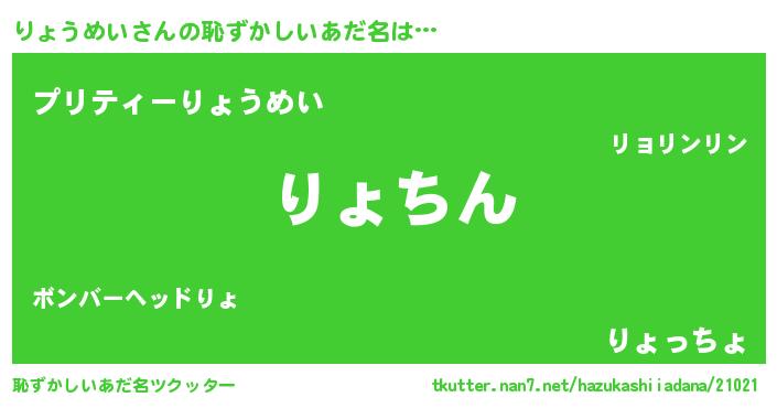 | ヘコむあだ名 | 『りょうめい(苦笑)』『りょにゅー』 |