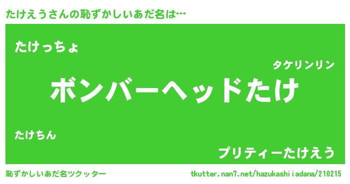 | 欧米人風あだ名 | 『ダニエルたけえう』『マイケルたけえう』 |