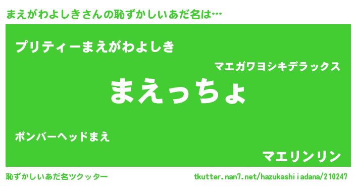 | 意味不明あだ名 | 『住所不定無職まえがわよしき(91歳)』 |