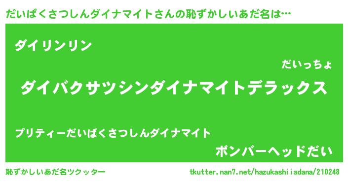 | ヒーロー風カッコイイあだ名 | 『超時空戦士ダイバクサツシンダイナマイト』 |