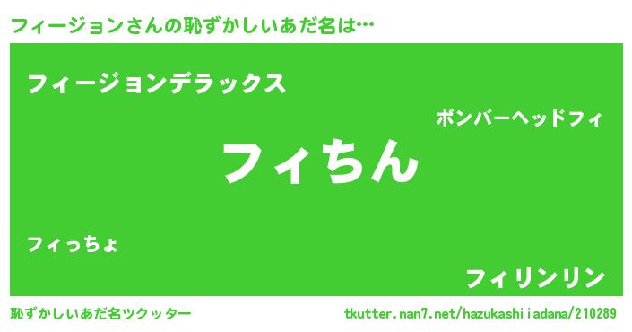 | ヘコむあだ名 | 『フィージョン(笑)』『フィぷりん』 |