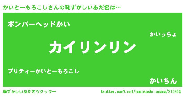 | ヘコむあだ名 | 『かいぷりん』『かいとーもろこし(爆)』 |