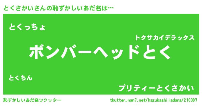 | ヒーロー風カッコイイあだ名 | 『仮面トクダー』『天空の使者とくさかい』 |