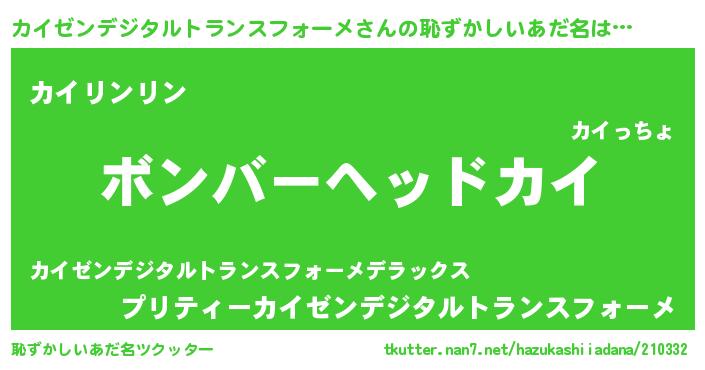 | ヒーロー風カッコイイあだ名 | 『慈愛の使者カイゼンデジタルトランスフォーメ』 |