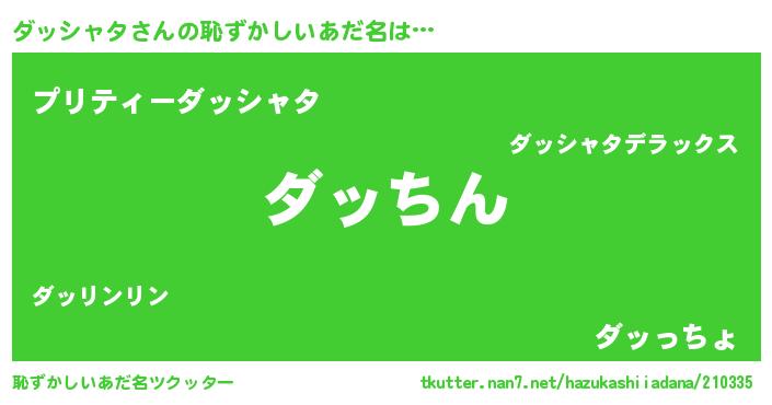 | ヘコむあだ名 | 『ダッシャタ(笑)』『ダッにゅー』 |