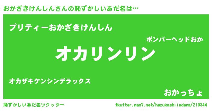 | 男性向けラノベタイトル風あだ名 | 『転生したらおかざきけんしんだった件』 |
