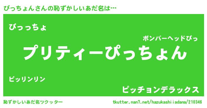 | 意味不明あだ名 | 『ペロリンぴっちょん』『自称ぴっちょん』 |