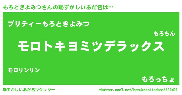 | 女子向けラノベタイトル風あだ名 | 『もろときよみつアンティーク』 |