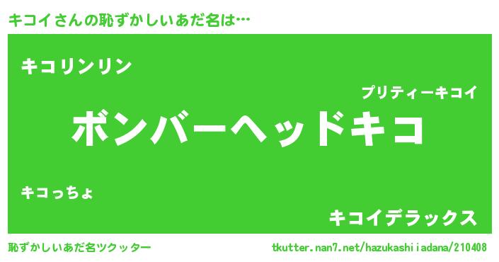 | ヘコむあだ名 | 『キコぷりん』『キコもー』 |