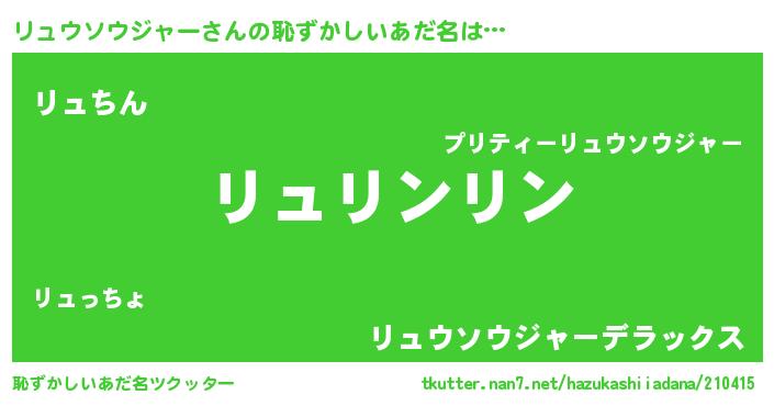 | 意味不明あだ名 | 『住所不定無職リュウソウジャー(12歳)』 |