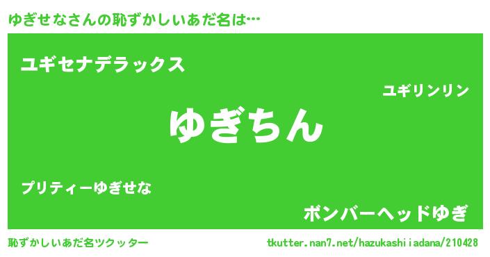| ヘコむあだ名 | 『ゆぎせな(苦笑)』『ゆぎぷりん』 |