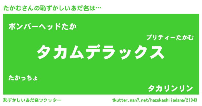 | ヒーロー風カッコイイあだ名 | 『ウルトラ戦士タカム』『仮面タカダー』 |