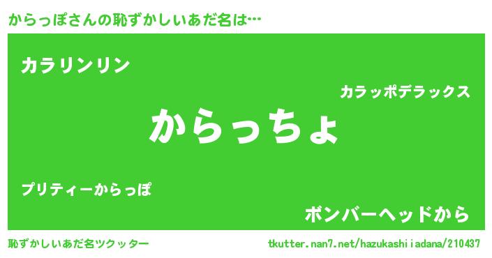 | ヘコむあだ名 | 『酢こんぶ』『からっぺ』『からもー』 |