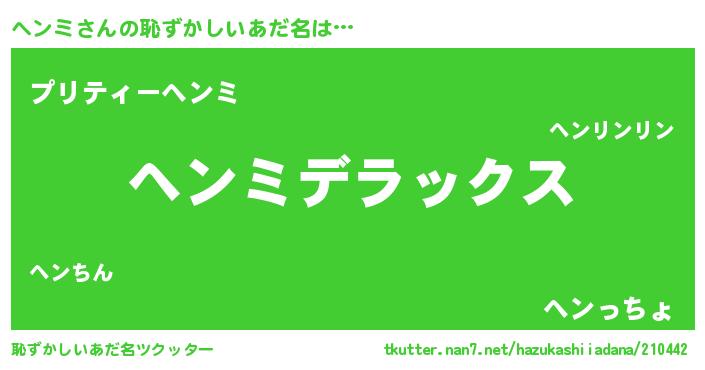 | 男性向けラノベタイトル風あだ名 | 『Re:ヘンミから始める異世界生活』 |