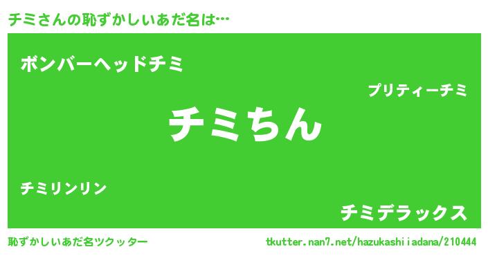 | 意味不明あだ名 | 『たけのこ科チミ属』『永久保存チミ』 |