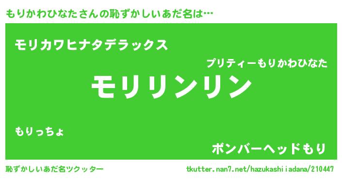| 意味不明あだ名 | 『住所不定無職もりかわひなた(1歳)』 |
