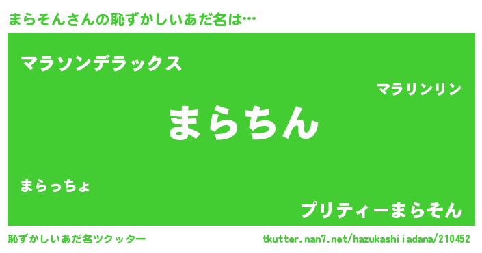 | 意味不明あだ名 | 『永久保存まらそん』『自称まらそん』 |
