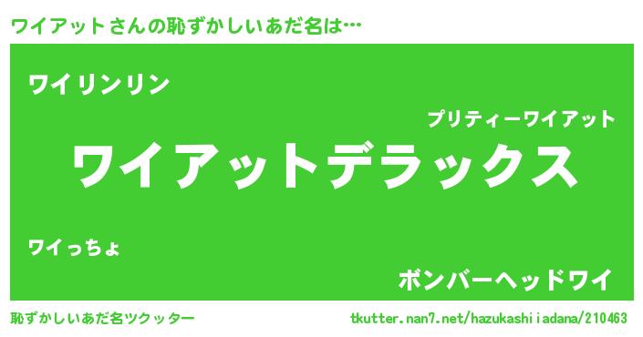 | 女子向けラノベタイトル風あだ名 | 『乙女ゲームの破滅フラグしかない悪役ワイアットに転生してしまった…』 |