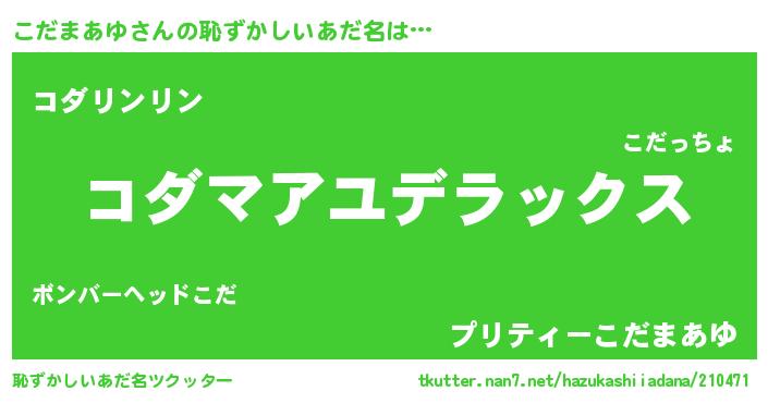 | 意味不明あだ名 | 『自称こだまあゆ』『ペロリンこだまあゆ』 |