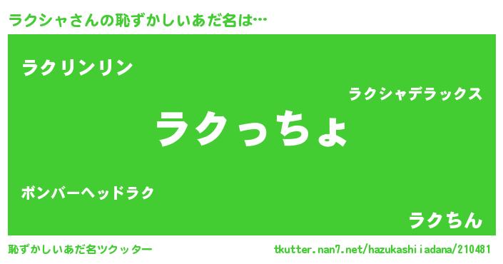 | 意味不明あだ名 | 『ラクシャフォーエバー』『自称ラクシャ』 |