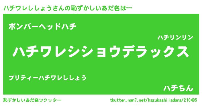 | ヘコむあだ名 | 『ハチワレししょう(笑)』『ハチ太郎』 |