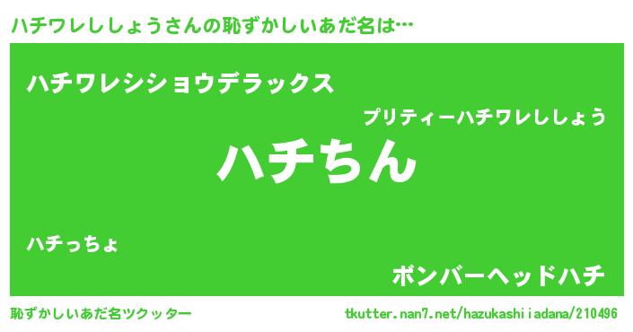 | ヘコむあだ名 | 『ハチワレししょう(笑)』『ハチにゅー』 |